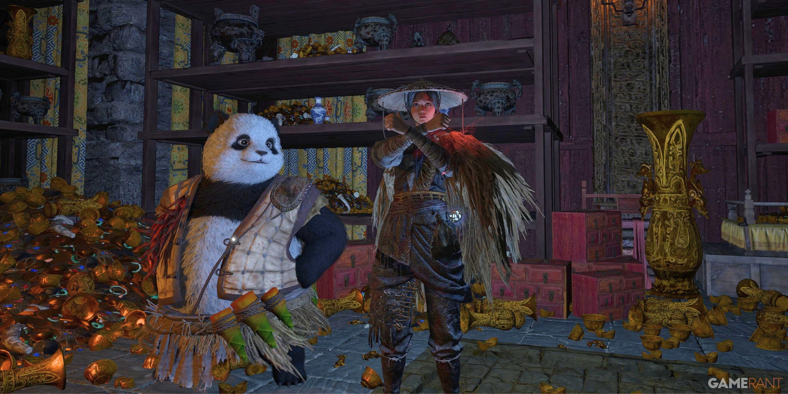 From the temple, turn, rotate and go to the area with a long red food enclosed enemy. Go inside Bronze pillars and activate the door to the lift. Ride to the elevator and turn left to go to the red branch. At the end of the way, return to the left, and when you reach Crossroads, take the right way to avoid the enemies of the left bronze enemies. Drop forward to find the rock of open paths above. Return to the drop-down place, and this time Increase the enemy in a new way To find pandes on the side of a bethouse gate.