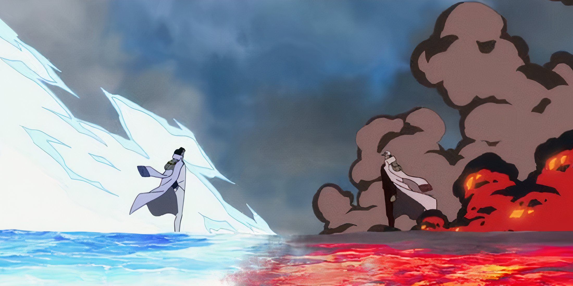 Potentially, this change of scenery could be an indication of the extent of the Logia Devil Fruit Awakening. Most of the time a piece Devil Fruit Awakenings allow the user to manipulate objects around them with their fruit, but Logia Devil Fruits can generate and manipulate their own elements at will. However, no Loggia Devil Fall has been shown to permanently alter the environment to that extent. In fact, it may be two naval admirals both using their awakenings for the only time in the series.