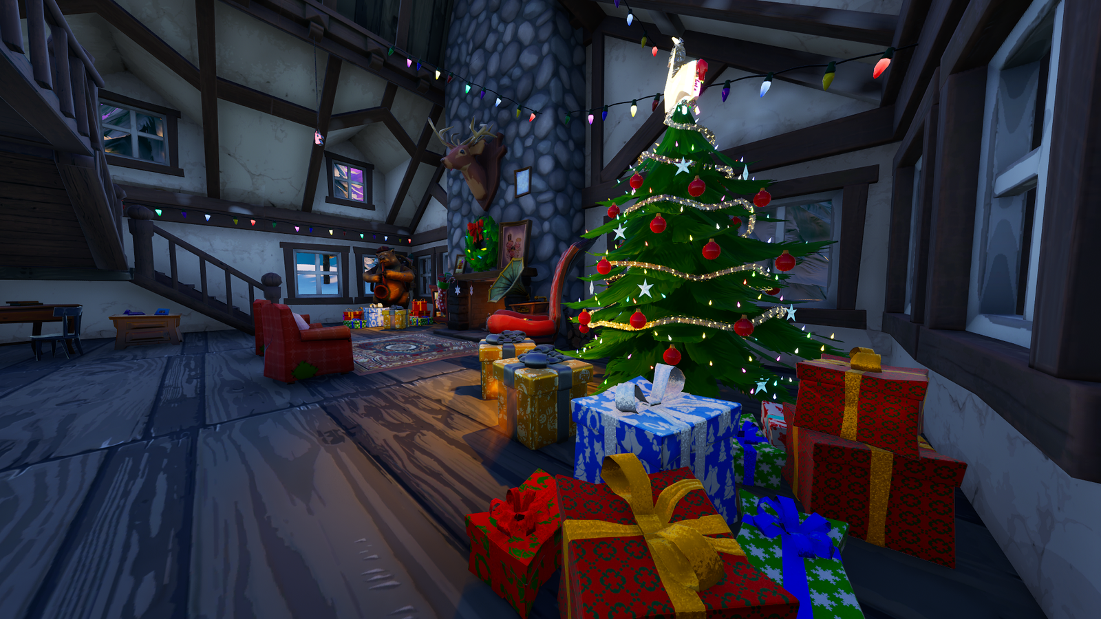 As soon as players enter the cabin, the Greatest Hits quest will be set to complete immediately, rewarding them. 8,000 XP. The interior of the cabin contrasts sharply with the desolate landscape outside. While it's cold and lonely outside, the fireplace is burning hot inside, gifts are set, homemade pictures are hung above the mantle, creating a very cozy atmosphere.