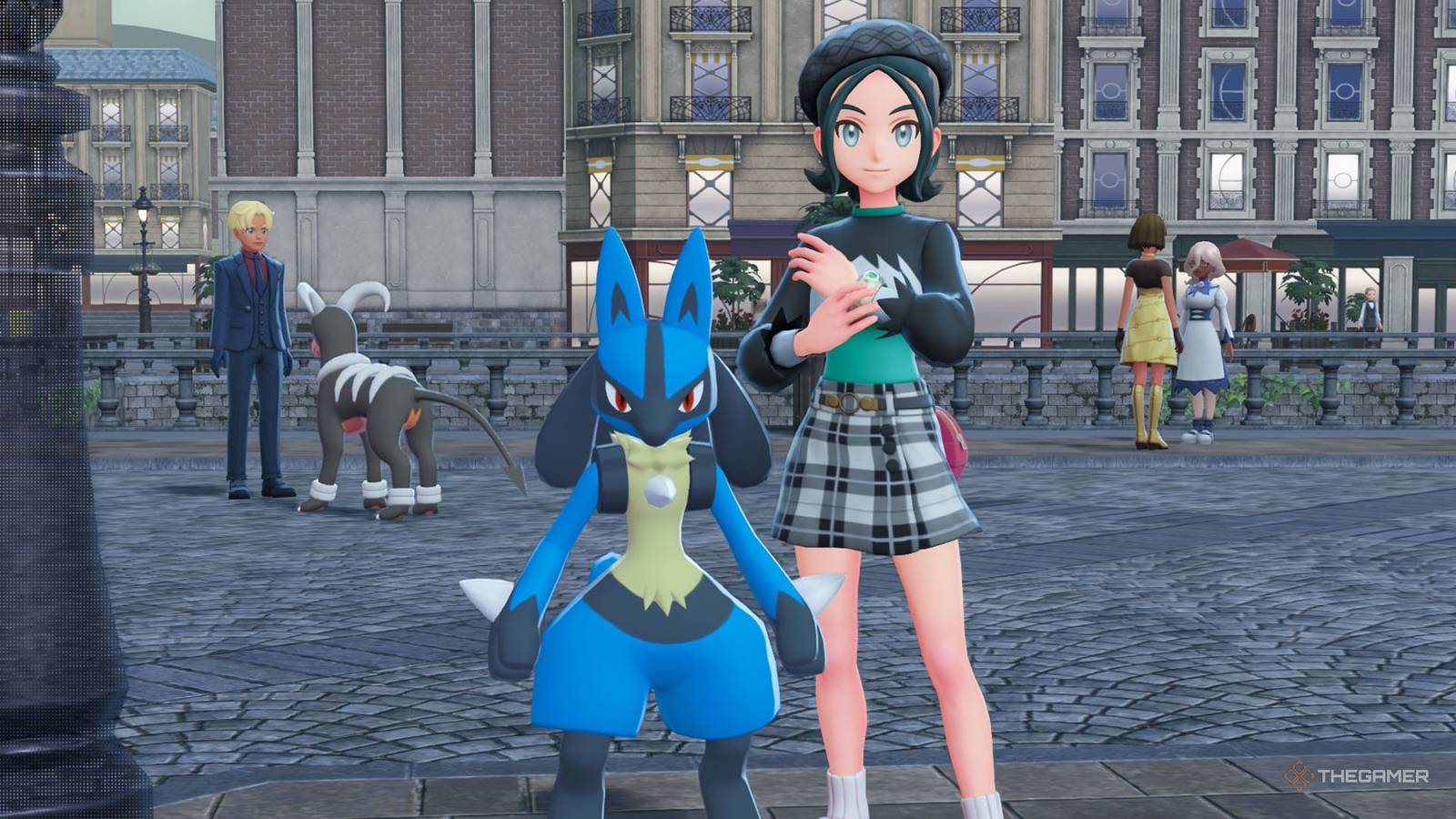 At a cafe with Riolu in Pokemon Legends ZA.