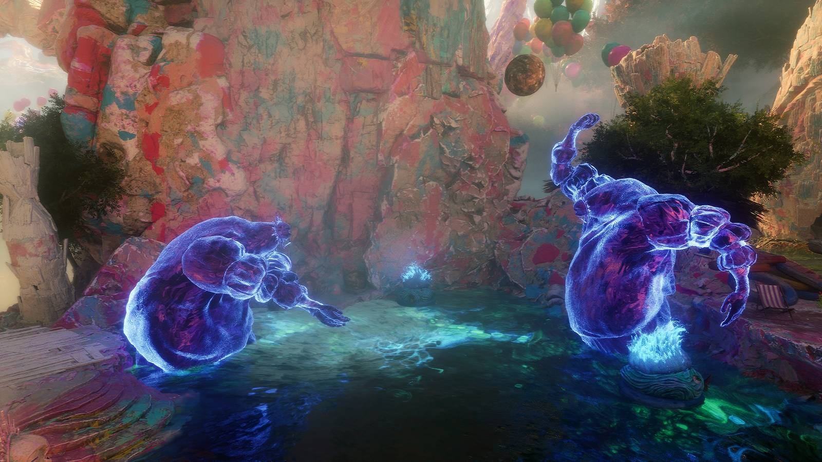 Talk to the Half-Baked Lifeguard, and they'll mention that the area's esque statues are in disrepair, implying that they need to be repaired.