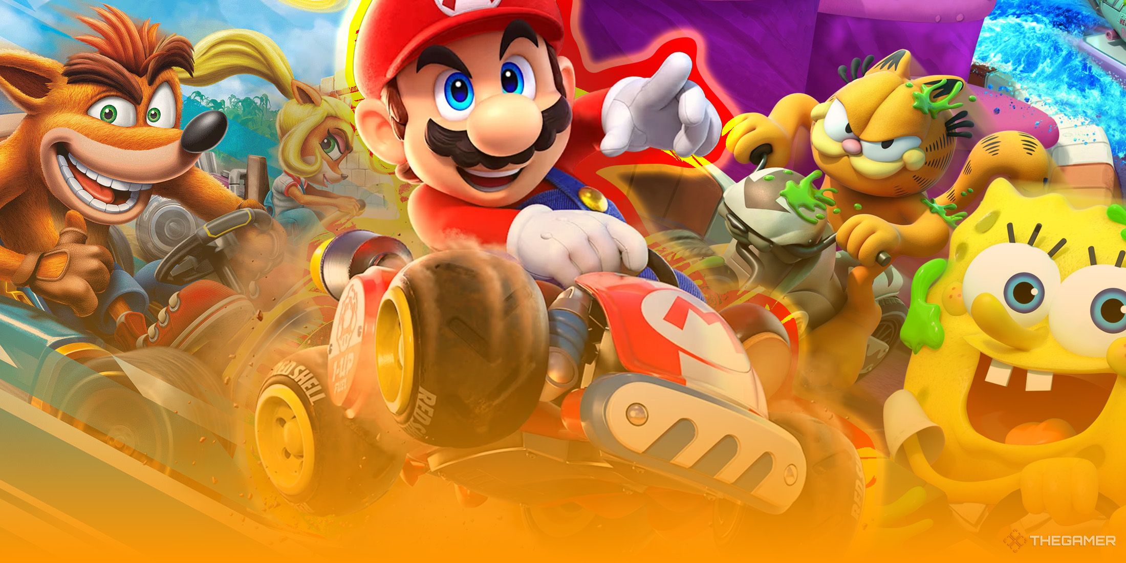 Mario Cartx, Grasal Team Racing Nightro-Fuel, and Disquisite character in Disney pace and disqualification.
